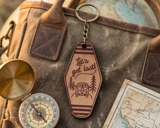 Vintage Motel Key Leather Keychain | Let's get lost