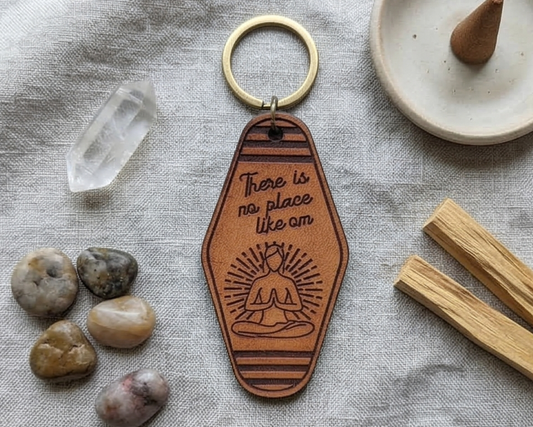 Vintage Motel Key Leather keychain | There's no place like om