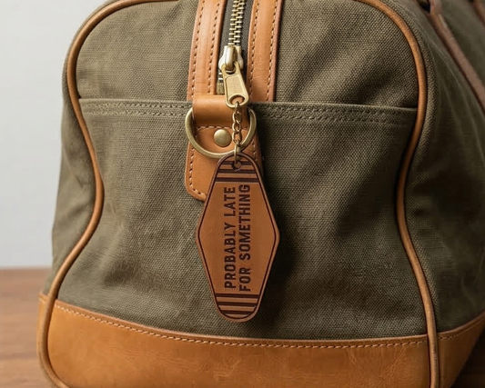 Vintage Motel Key Leather Keychain | Probably Late for Something